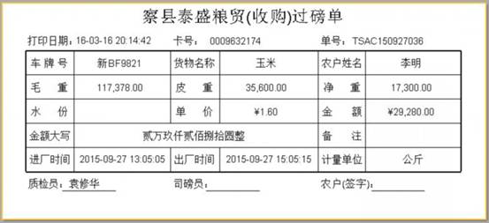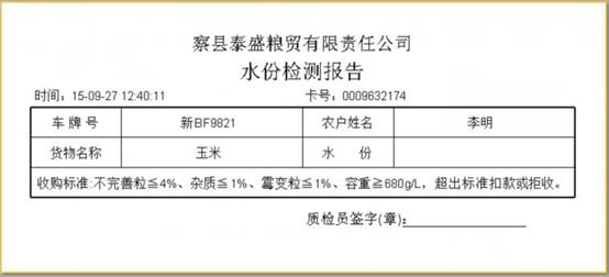 收購(gòu)或銷售車輛進(jìn)廠后,需要在發(fā)卡處領(lǐng)取ID卡,發(fā)卡人員將車號(hào)、貨名、來(lái)往單位等信息寫入卡片,并打印質(zhì)檢單。質(zhì)檢單送往化驗(yàn)室,進(jìn)行樣品化驗(yàn),并錄入水份率,在出廠時(shí),系統(tǒng)會(huì)自動(dòng)提示錄入水份信息才能完成過(guò)磅,有效避免了化驗(yàn)數(shù)據(jù)傳遞不及時(shí),過(guò)磅漏輸錯(cuò)輸水份等現(xiàn)象。