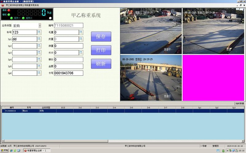 車輛上磅刷卡自動(dòng)過(guò)磅,車頭、車尾、車廂監(jiān)控?cái)z像機(jī)會(huì)自動(dòng)抓拍圖片,和數(shù)據(jù)保存在一起,查詢數(shù)據(jù)時(shí),會(huì)顯示過(guò)磅詳細(xì)數(shù)據(jù)和抓拍的6張圖片。當(dāng)車輛不完全上磅時(shí),紅外對(duì)射防作弊檢測(cè)會(huì)提示司機(jī)停好并重新刷卡;在車輛規(guī)定時(shí)間內(nèi)重復(fù)刷卡、換卡刷卡、不下車多次刷卡均有相應(yīng)的控制措施。