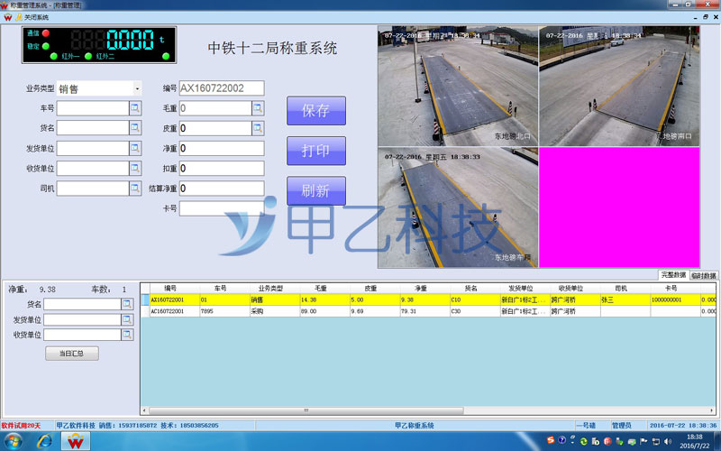 中鐵十二局集團有限公司是世界500強企業——中國鐵建股份有限公司旗下綜合實力最強的成員單位,鄭州甲乙科技為中鐵十二局配置的智能視頻抓拍稱重系統,系統包括:高清視頻抓拍攝像頭、異地智能組網、遠程視頻監控查看、定制化數據報表組成。